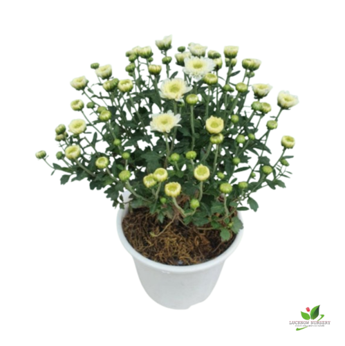 Chrysanthemum White (Guldaudi) Flower Plant – With White Pot