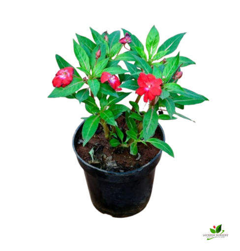 Garden Balsam / Impatiens (Red) Plant – With Pot