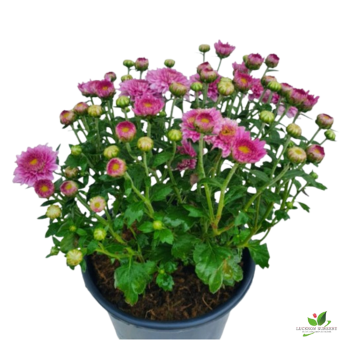 Chrysanthemum Pink (Guldaudi/Guldavari) Flower Plant – With Pot