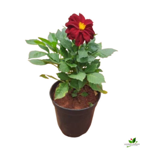 Dwarf Dahlia (Red) Flower Plant – with Pot
